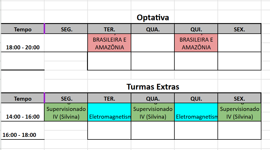 Horário da Turmas 2026/1 - Licenciatura em Ciências: Matemática e Física