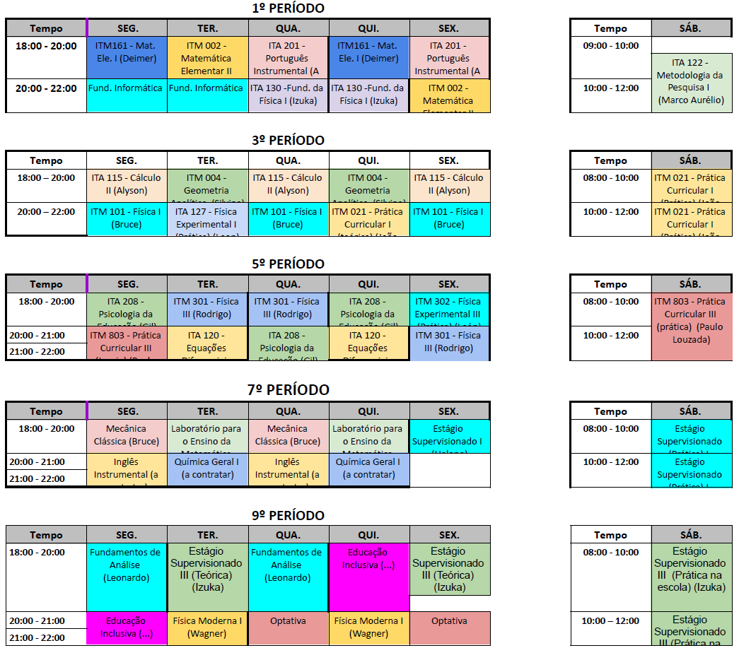 Horário da Turmas 2026/1 - Licenciatura em Ciências: Matemática e Física